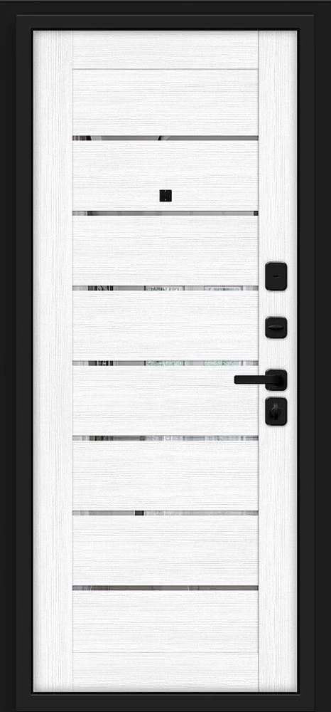 Семь усиливающих уголков и защитный карман для замков. Дополнительную стойкость ко взлому обеспечивают два противосъемных штыря.