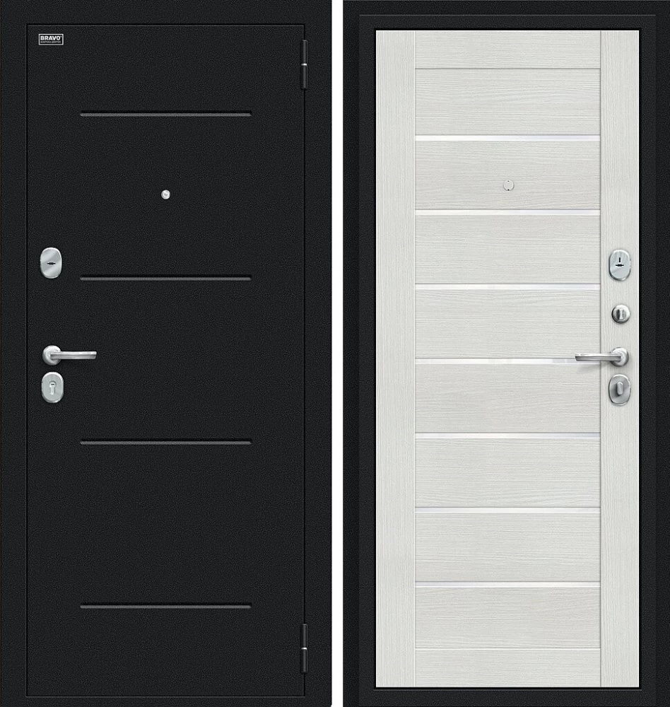 Дверь Браво Техно Букле черное/Bianco Veralinga среднего ценового диапазона. Стоит дверь 26 850 руб. и это отличное соотношение цены и качества. Модель подойдет для установки, например в новостройку. Прослужит долго и будет надежной защитой вашей квартиры или дома.