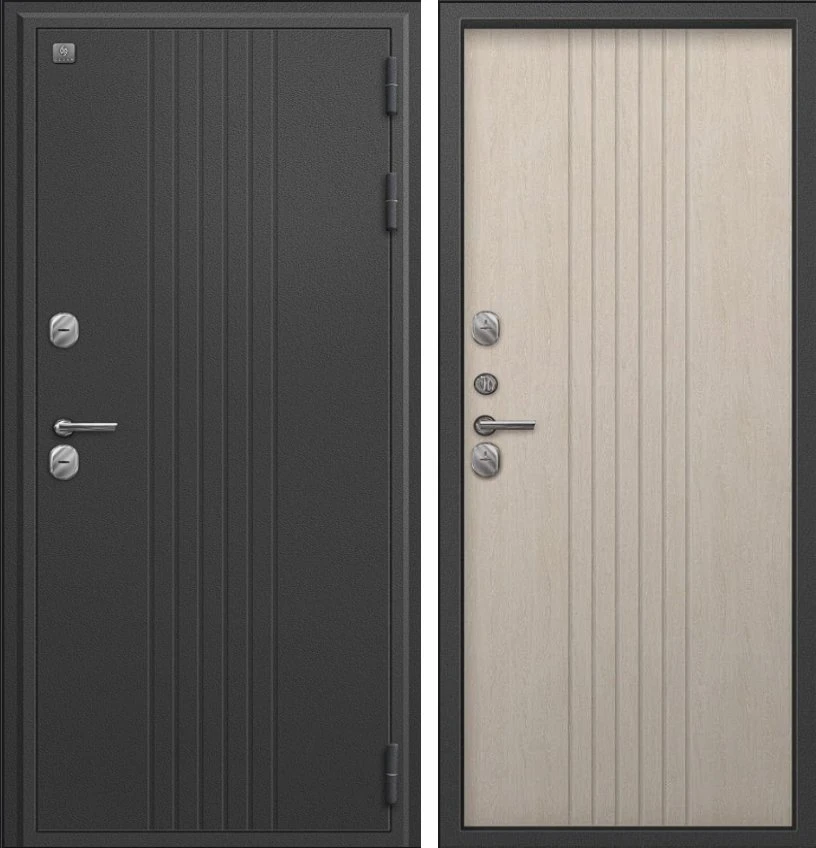 Надежная входная Дверь Термо-90 графит букле - седой дуб премиум класса по цене 34 000 руб. Большая толщина стали защитит от проникновения в ваш дом, квартиру или коттедж. Используется очень качественная фурнитура: замки, цилиндры, ручки, защелки. Покрытие и отделка двери изготовлено под внимательным контролем производителя. Дверь имеет долгий срок службы и гарантию.